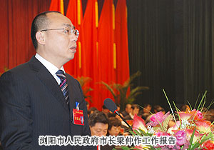 大会听取和审议了中共浏阳市委副书记、市长梁仲的《政府工作报告》和“十二五”规划纲要说明,梁市长在报告中指出,浏阳市第十五届人大五次会议的召开于浏阳是承前启后、继往开来的关键时刻,肩负着谋划“十二五”、实现新跨越的重大使命,承载着全市人民加快“两个富裕”进程、过上更加幸福生活的热切期盼。他衷心希望各位代表集中精力议大事,专心致志谋大局,圆满完成会议的各项任务。会议同时对浏阳市2010年社会发展计划执行情况与2011年国民经济和社会发展计划(草案)的报告进行了审查;并审查了关于浏阳市2010年财政预算执行情况和2011财政预算(草案)的报告等。